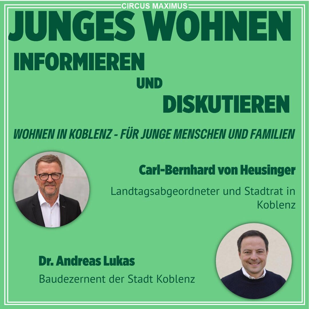 Hohe Mieten, unsichere Wohnverhältnisse oder fehlendes Angebot für junge Familien – wie kann die Wohnsituation junger Menschen in Koblenz verbessert werden? Darüber diskutieren Carl-Bernhard von Heusinger, Landtagsabgeordneter und Stadtrat in